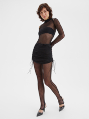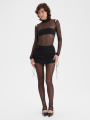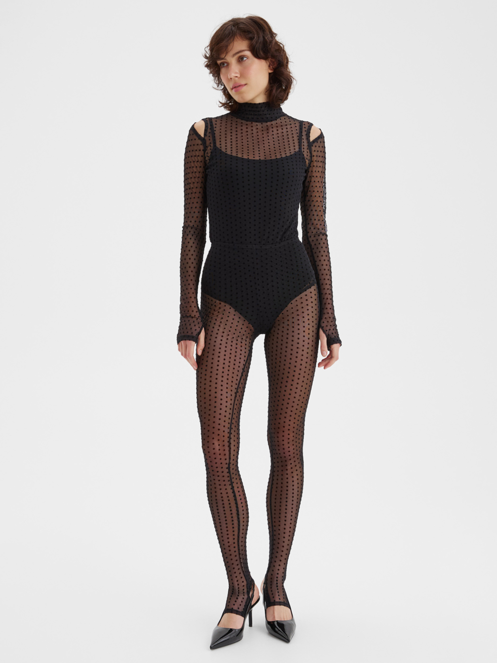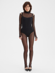 Изысканные полупрозрачные легинсы в мелкий бархатный горошек со стильными штрипками прекрасно вытягивают силуэт, добавляя нотку пикантности в ваш образ. Стилизуйте их с боди, мини-юбкой или прилегающим жакетом из нашей новогодней коллекции. В этих образах вы будете притягивать взгляды окружающих, очаровывая их своим магнетизмом.