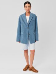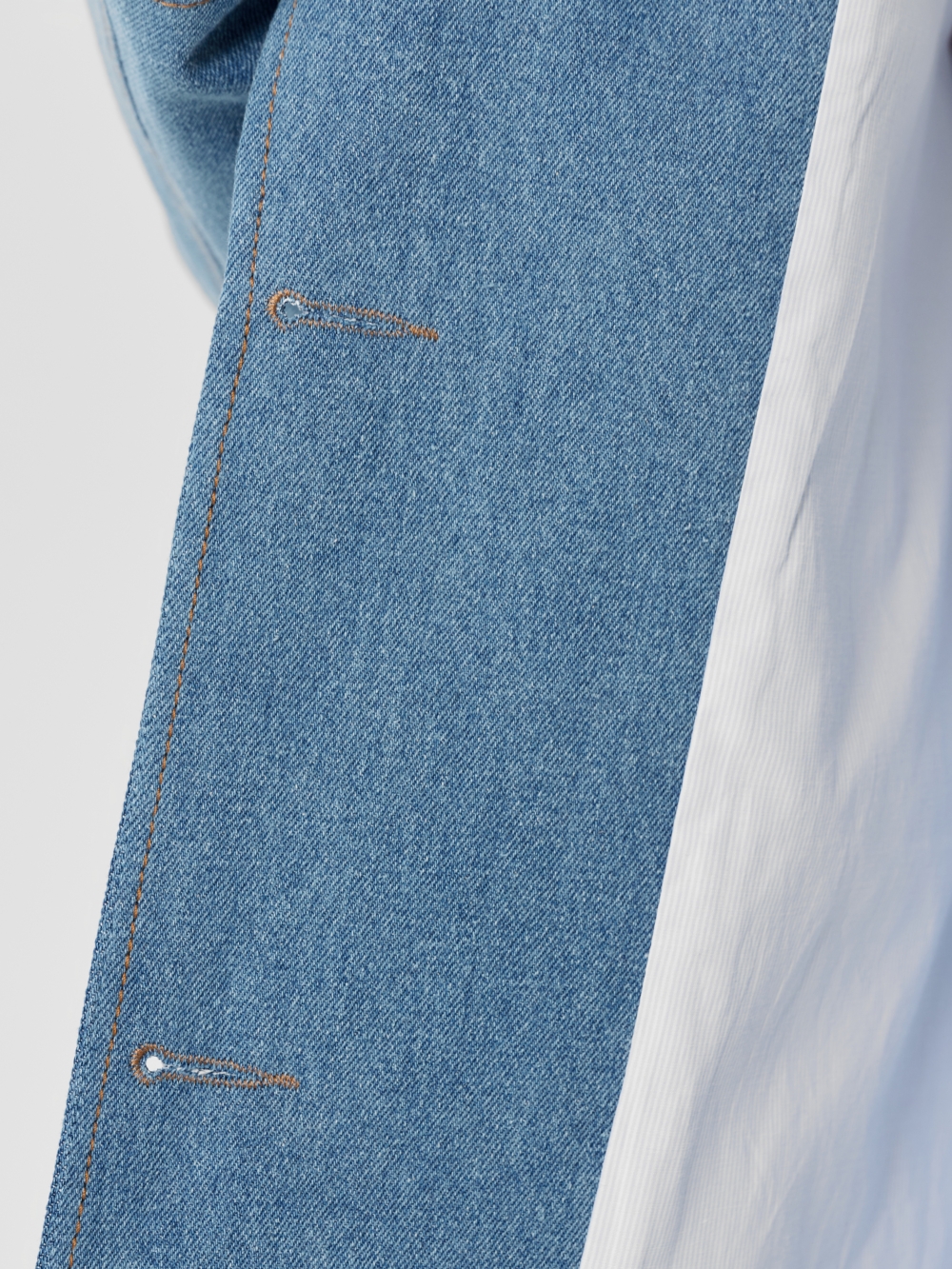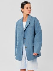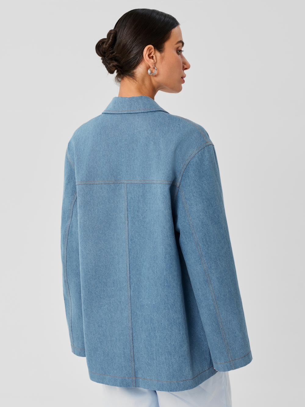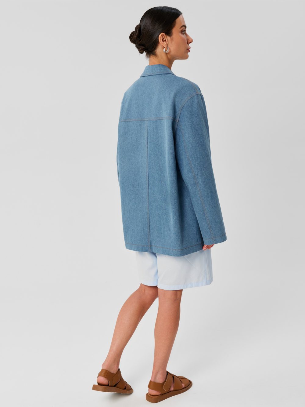 Универсальная ткань деним становится еще более популярной в сезоне весна-лето. Джинсовый пиджак насыщенного голубого цвета свободного кроя впишется в любой гардероб и внесёт разнообразие в повседневные образы. Сделано в России.