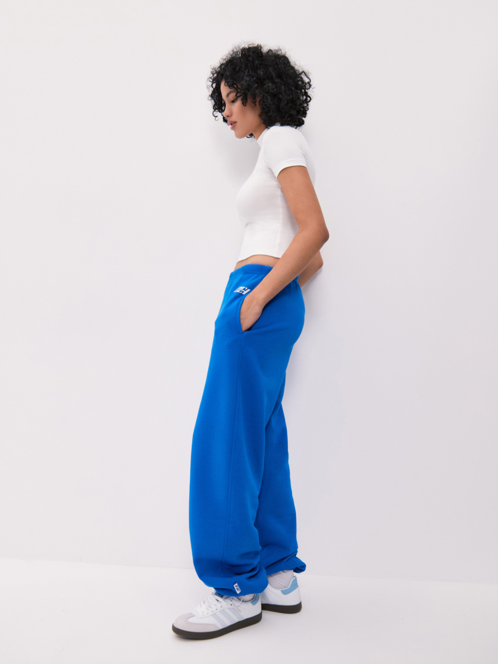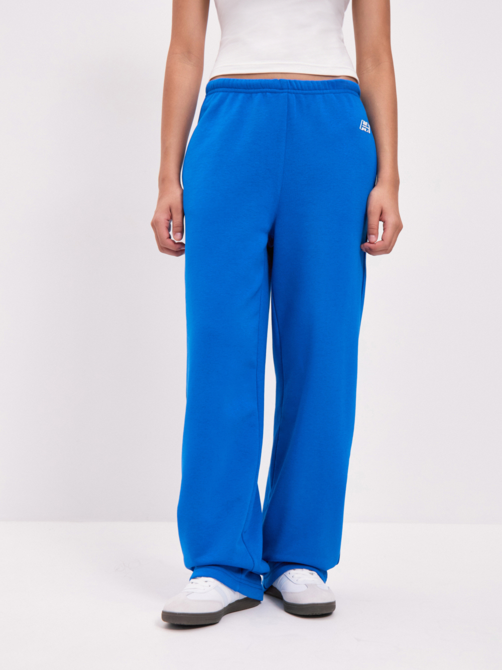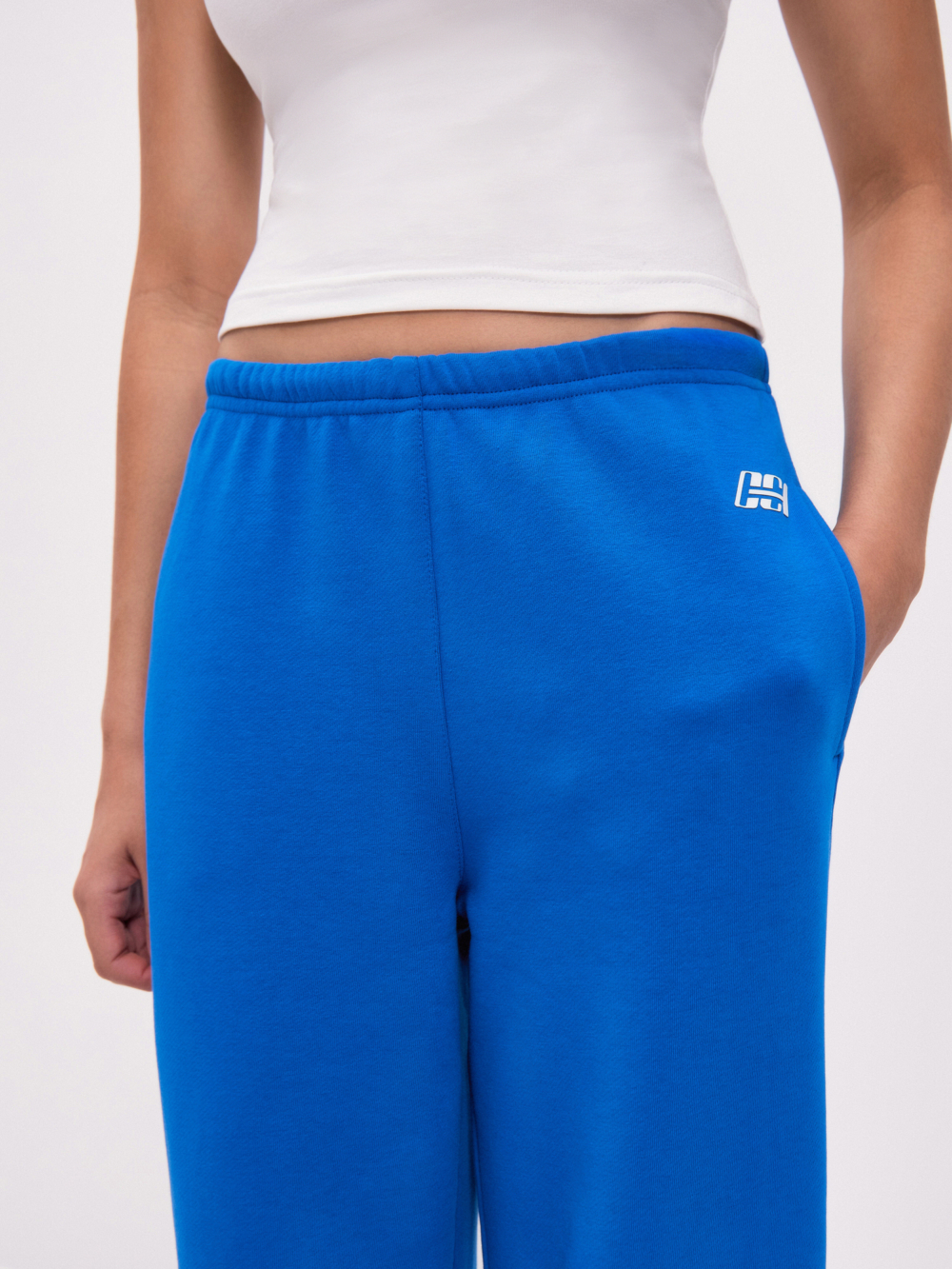 Спортивные брюки прямого кроя в цвете сапфир дополнены кулиской по низу изделия, которая позволят моделировать форму и создавать два силуэта в одном изделии. Выполнены из футера премиального качества, тактильно приятного и обеспечивающего комфорт даже при интенсивных нагрузках. Дополнены лаконичным стильным принтом. Прекрасный выбор для занятий спортом, отдыха, путешествий, а также для повседневных образов. Это изделие станет отличным выбором для тех, кто ценит качество, комфорт и оригинальность в одежде.