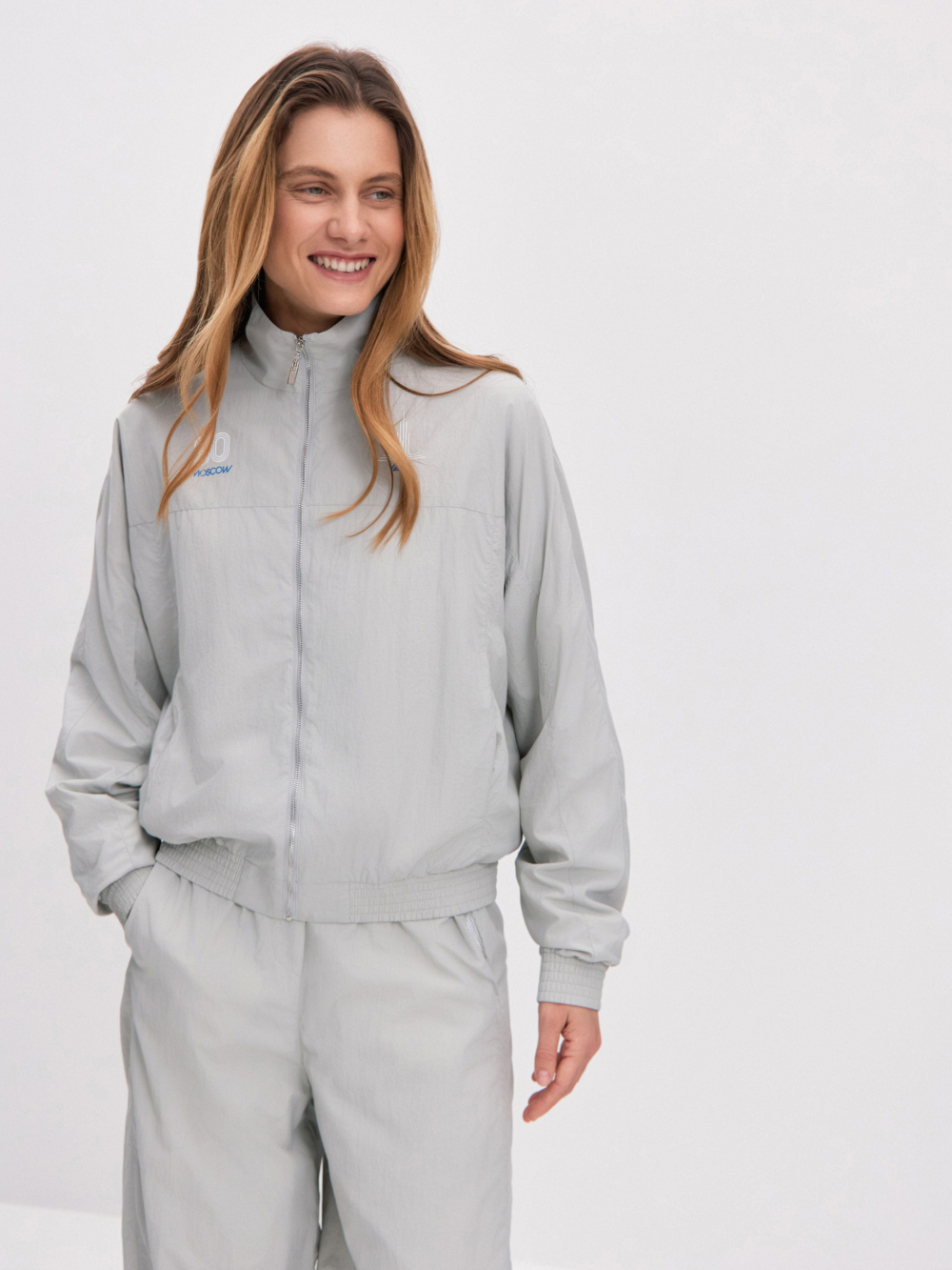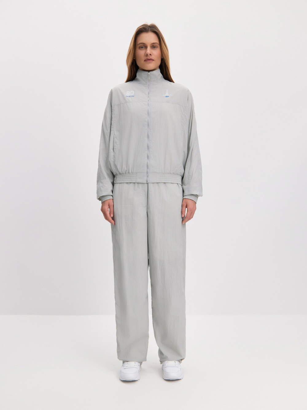 Стильный, практичный и универсальный спортивный костюм из плащевой ткани – прекрасный выбор для занятий спортом, отдыха, путешествий. Благодаря удобной и легкой сумочке из сетки его легко взять с собой в поездку, он не займет много места. Костюм состоит из ветровки со спущенной линией плеч, с отрезной контрастной кокеткой и с застёжкой-молнией и прямых брюк с регулируемым поясом без бокового шва, дополненных кулиской по низу изделия. Вдохновляясь эстетикой советского спорта и Олимпиадой-80, мы дополнили костюм оригинальным принтом. Этот костюм — идеальный выбор для тех, кто ценит качество, комфорт и оригинальность в одежде.