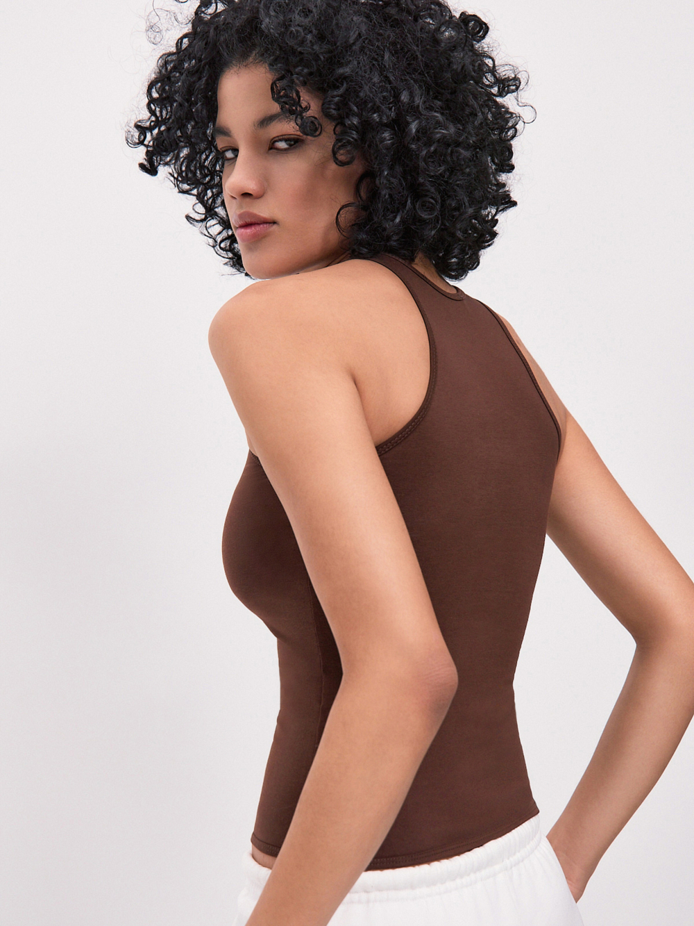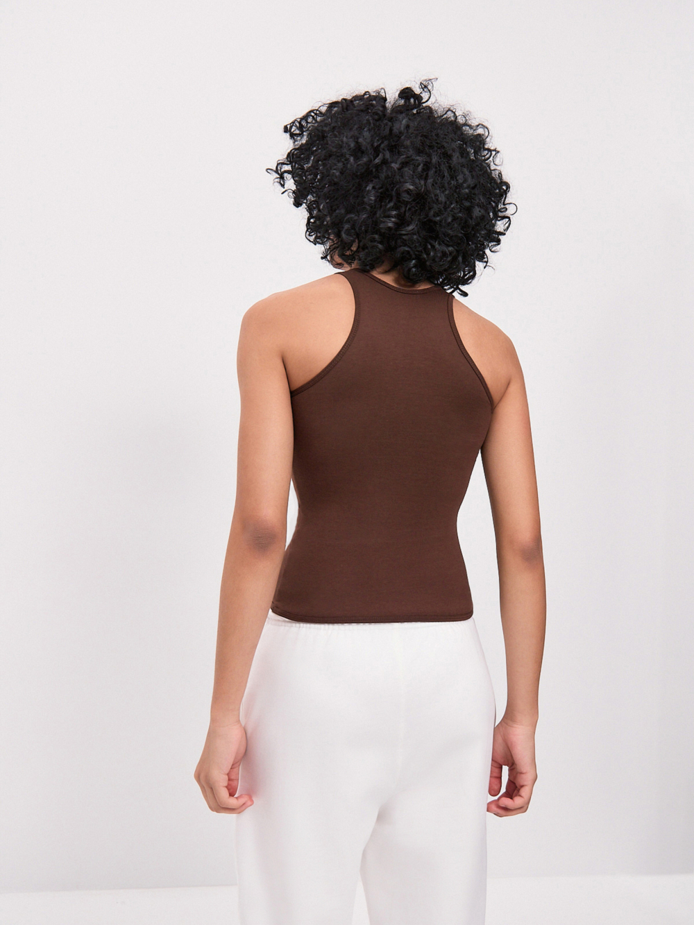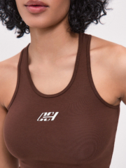 Стильная майка-топ шоколадного цвета выполнена из трикотажа пенье высшего качества – гигроскопичного, приятного к телу материала, который прослужит долго, не потеряет форму и цвет. Дополнена оригинальным принтом. Прилегающий силуэт подчеркнет достоинства фигуры. Прекрасно подходит для занятий спортом или для повседневных образов. Это изделие станет отличным выбором для тех, кто ценит качество, комфорт и оригинальность в одежде.